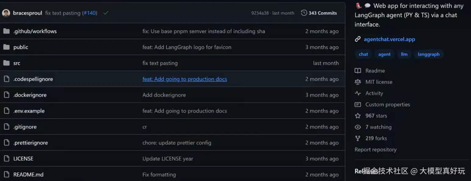 访问 Agent Chat UI GitHub 页面,克隆项目到本地: