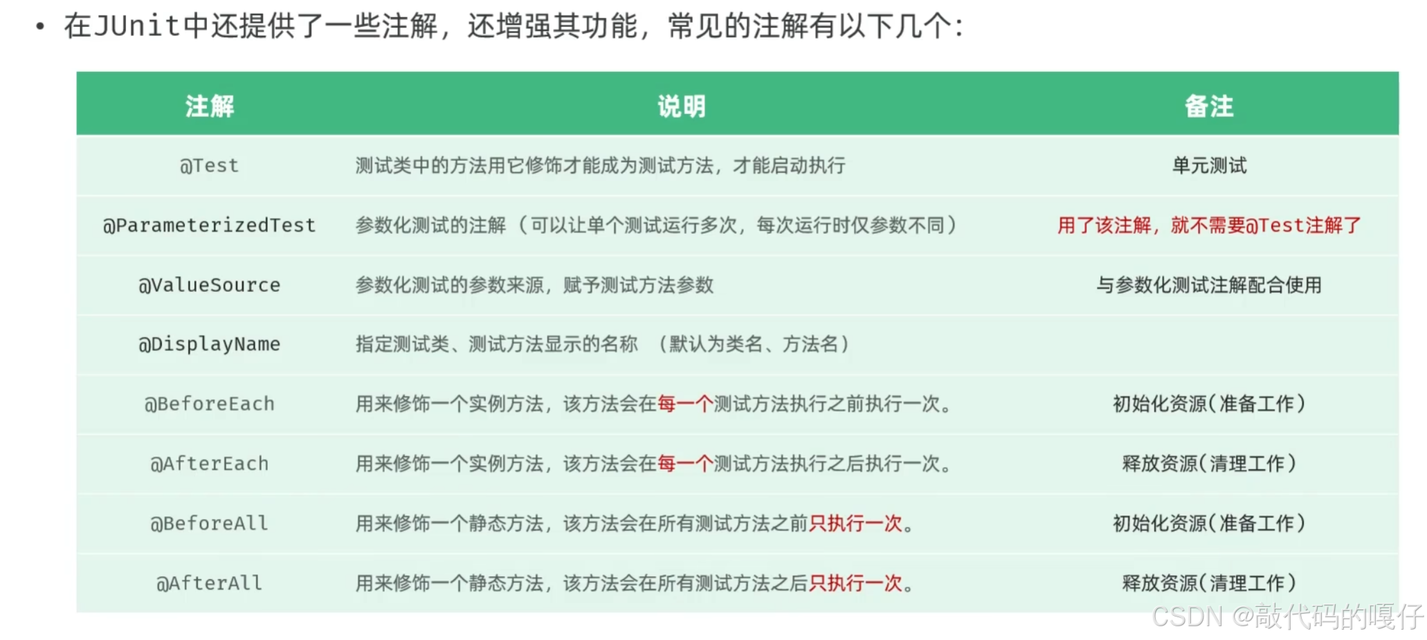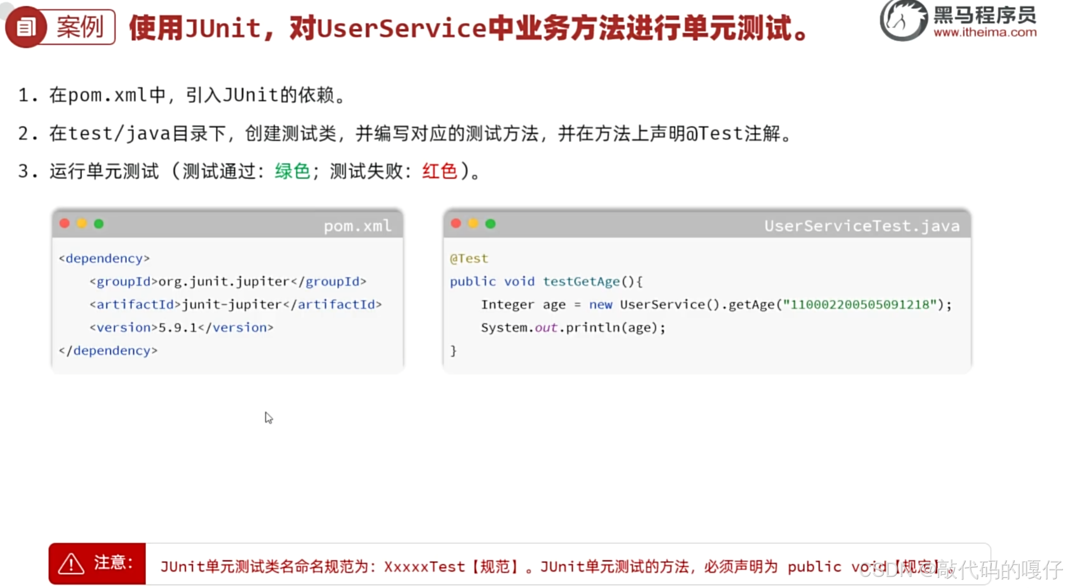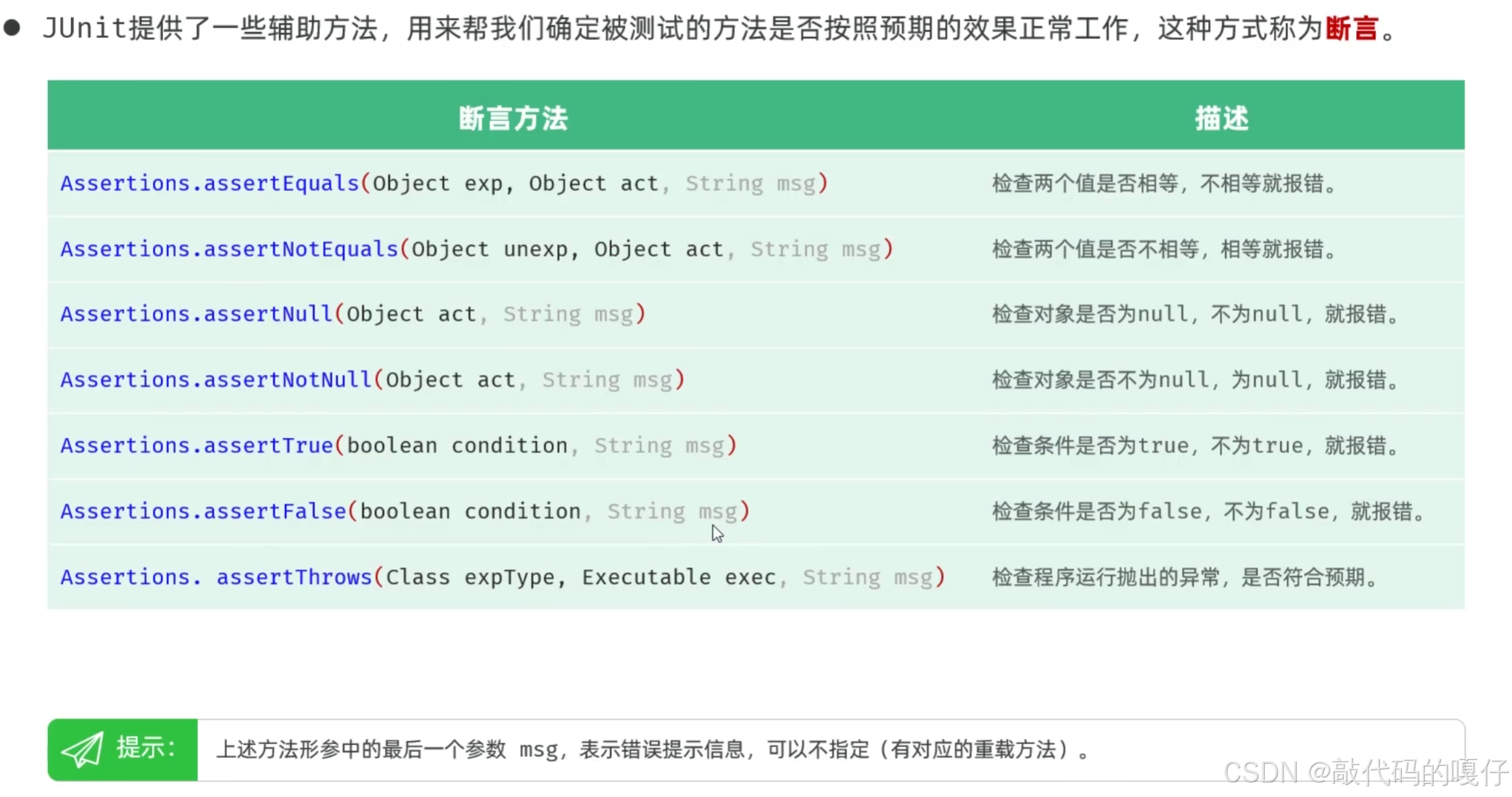 - 通过断言可以检测方法运行结果是否和预期一致,从而判断业务方法的正确性。
