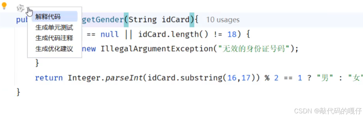 主包使用的是阿里的通义灵码,点击之后AI会根据业务方法自动进行测试代码的编写
