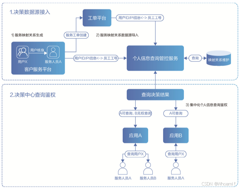 集中化决策中心 | 聚合全渠道数据访问请求,提供统一的鉴权服务。 | 确保所有查询客户信息的入口均受统一策略管控,降低合规风险。 |