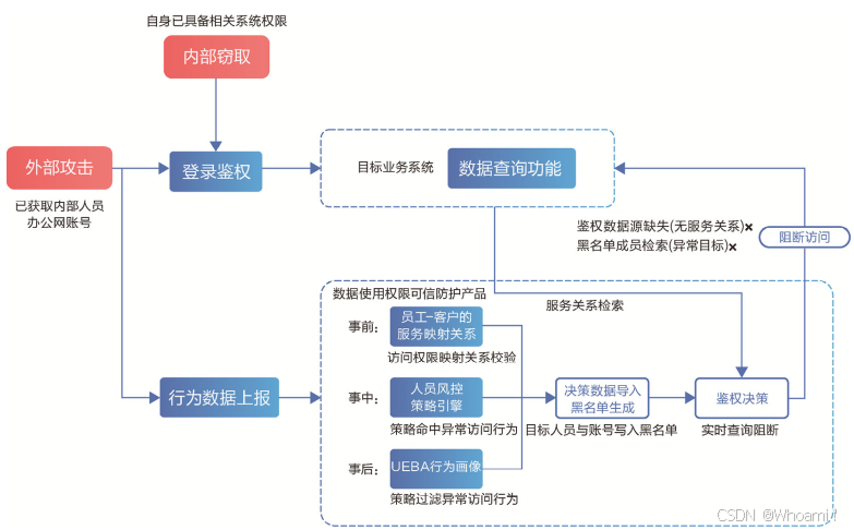 事中风控策略 | 集成员工行为画像与风控策略,对查询行为进行实时分析,及时发现并阻断异常操作。 | 从事中环节防御,能够识别身份冒用 和异常查询行为。 |