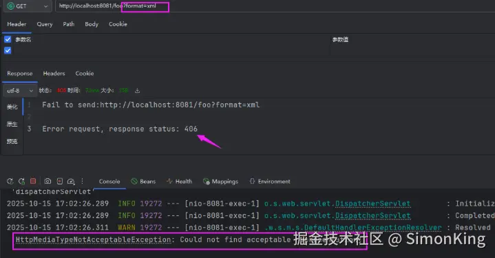 开启之后就会出现媒体类型无法接受的异常。如果换掉配置的参数,就和正常的参数没有区别了。