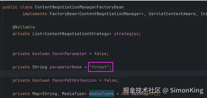 作用:配置内容协商策略,根据客户端请求的不同方式(如 URL 后缀、请求头等)决定返回数据的媒体类型。