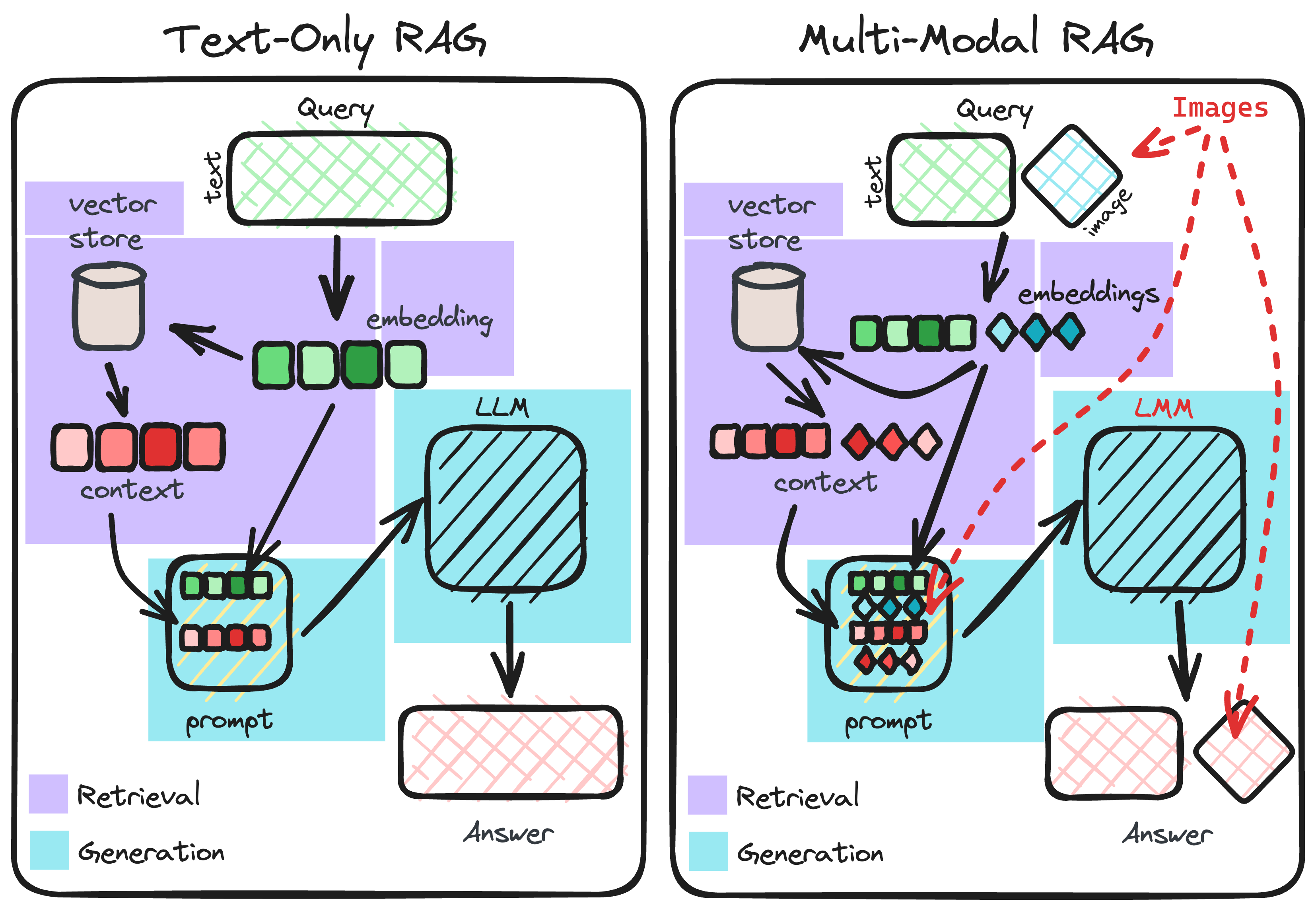 text-only RAG vs. 多模态 RAG对比图------看,多模态多了一双眼睛!