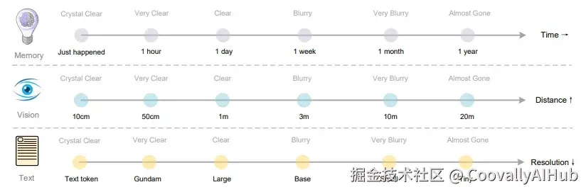 - 远期记忆 → 低分辨率、自然模糊(更少token)