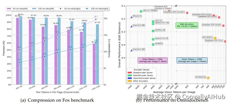 - 600-700文本token : 10.5倍压缩,96.5%精度(64视觉token)