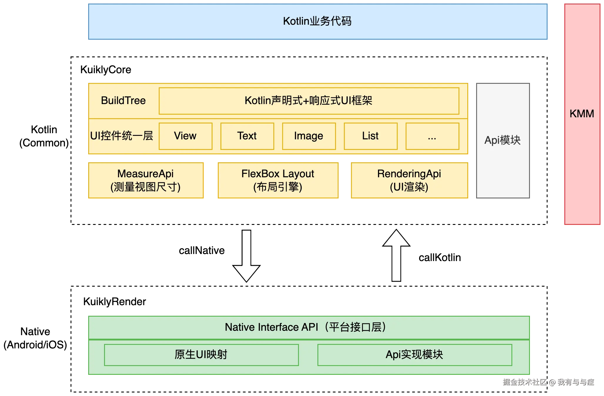 Kuikly是基于JetBrain公司推出的****KMM(Kotlin Multiplatform Mobile,现更名为 KMP)跨平台技术方案。