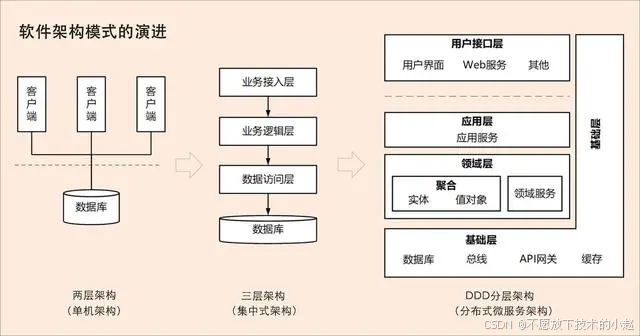 这些年随着软硬件技术的发展,软件设计架构也从最早的单机架构(BS/CS)、到集中式架构,再到如今微服务(MicroServices)分布式架构。