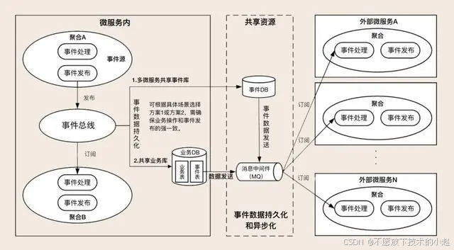 - 持久化到共享的事件数据苦衷,事件数据哭和业务库是独立的。