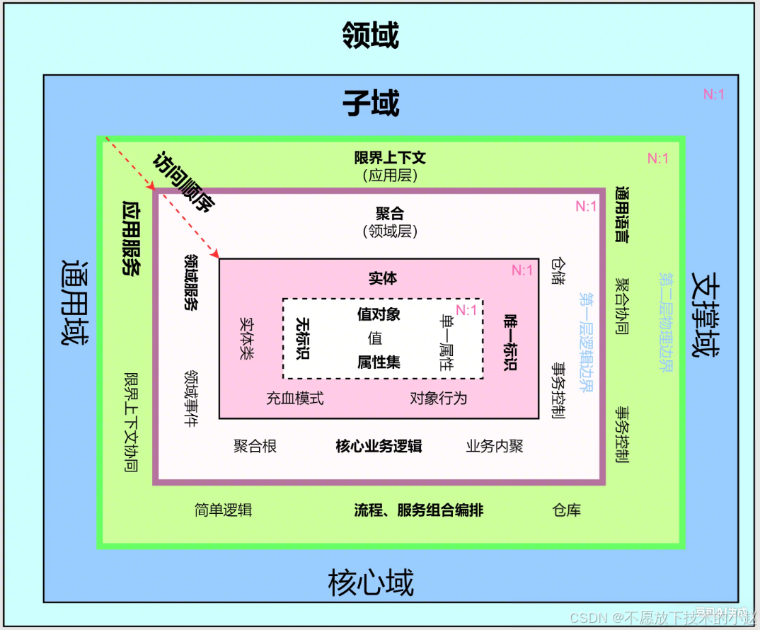 - 核心域 :是指业务领域中的核心业务逻辑和模型,它们是领域驱动设计的核心部分。核心域包括:领域模型 、领域服务 、业务规则 等,它们是业务领域中最重要、最稳定的部分。