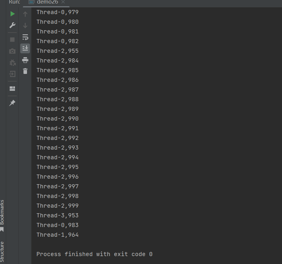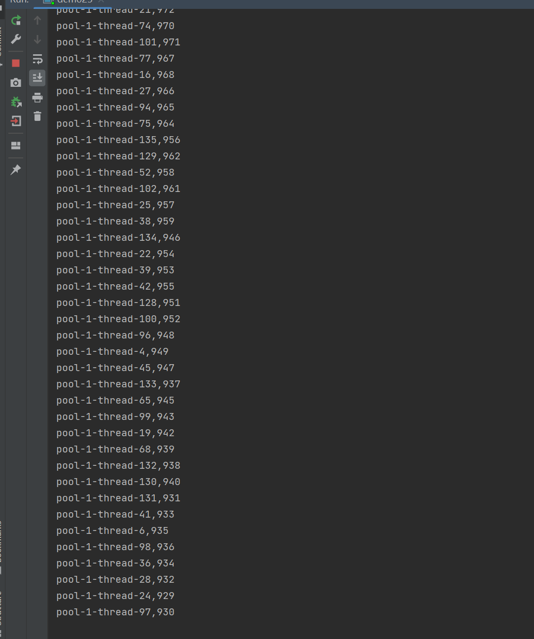 System.out.println(Thread.currentThread().getName() + "," + id);