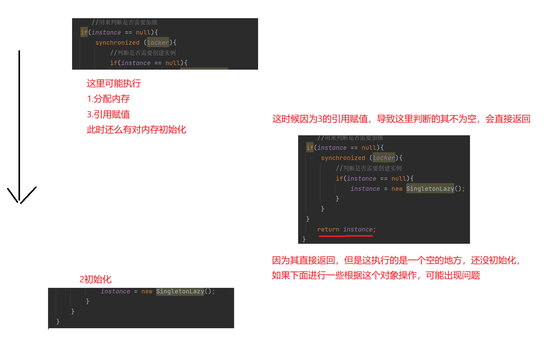 但是这样仍然有问题,指令重排序 的问题,代码经过编译器优化可能会导致一些指令的执行顺序改变,这样会出现问题