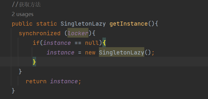 懒汉式是在获取对象的时候才进行初始化,并且这里也是只初始化一次
