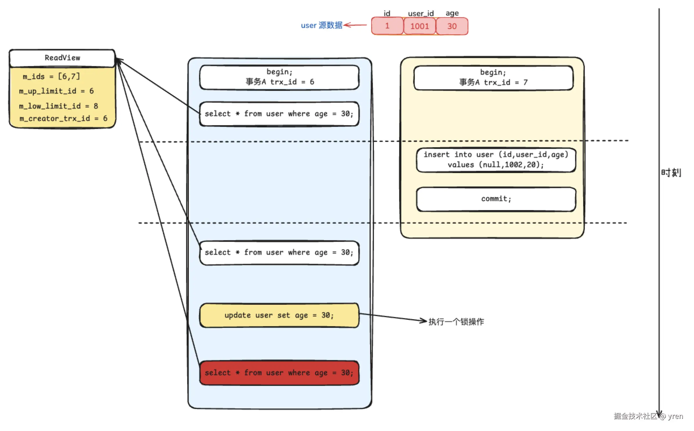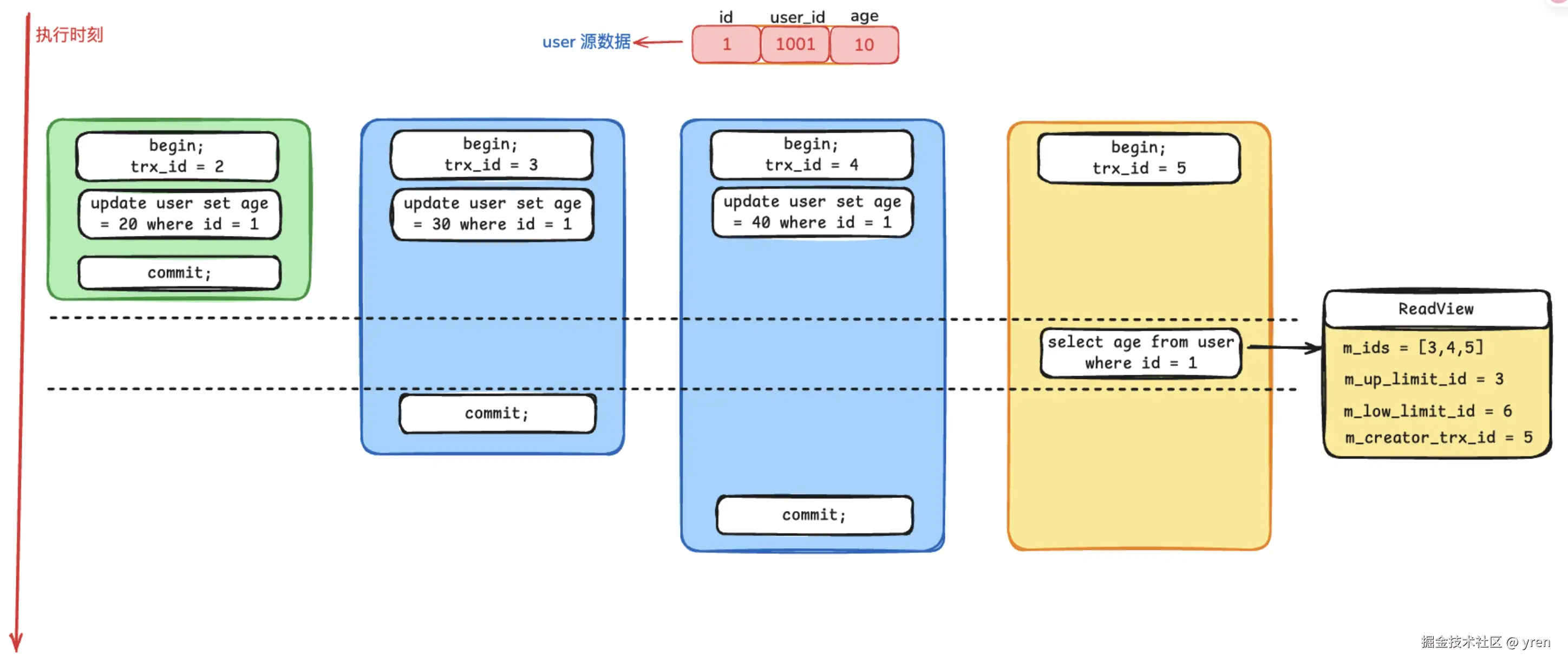 - 之后同一事务内的所有快照读,都会复用这份 ReadView。