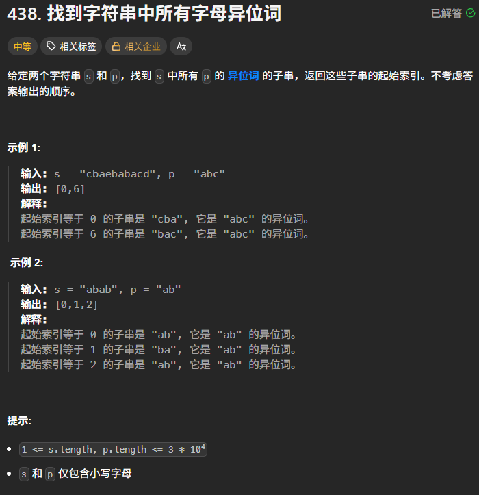 438. 找到字符串中所有字母异位词 - 力扣(LeetCode)