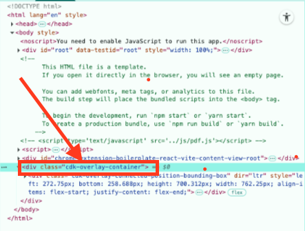 特别注意,因为@angular/cdk这个包的元素独立在了主component外面,像下面这样,所以它的样式要单独处理,插入到html里面让其生效。