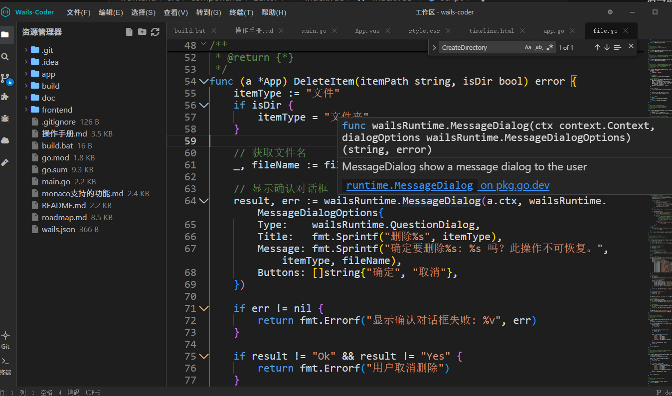 - 跳转到定义(Go to Definition):直接跳转到变量、函数、结构体或接口的声明位置,支持跨文件和跨包跳转