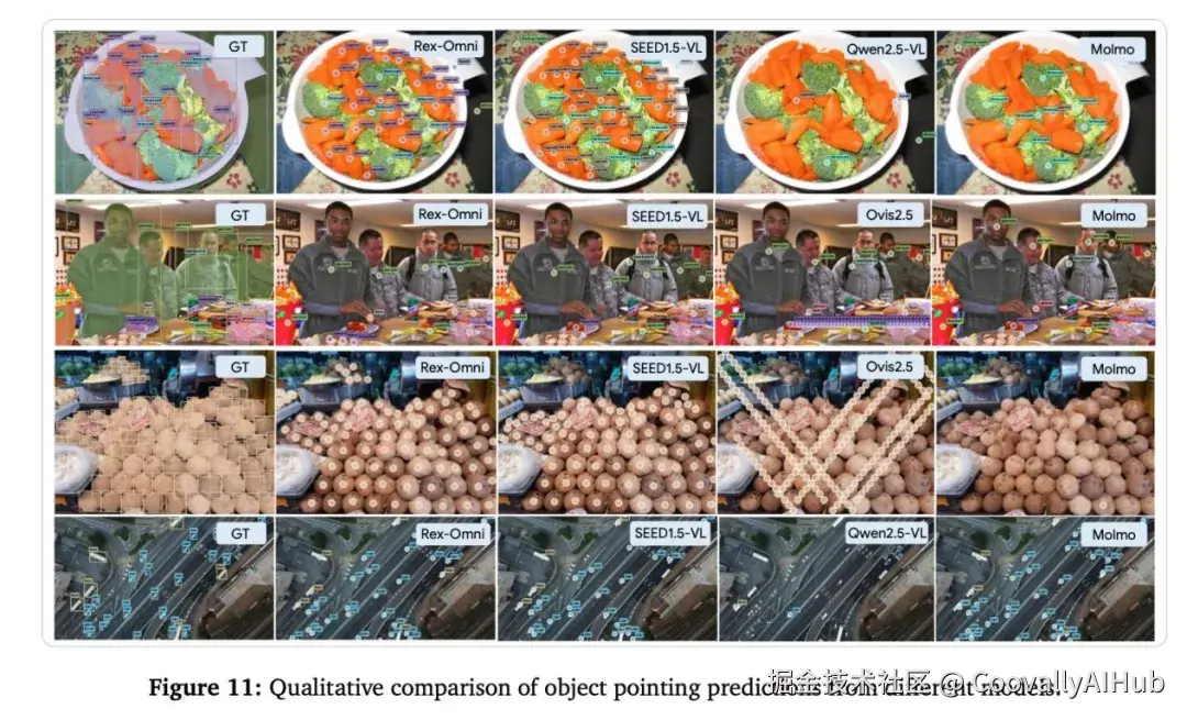 数据引擎支撑:团队构建自动化数据流水线,整合公共数据集与自产数据,最终形成2200万样本的训练集,覆盖定位、指代、指向等多种任务。