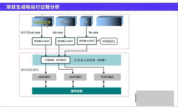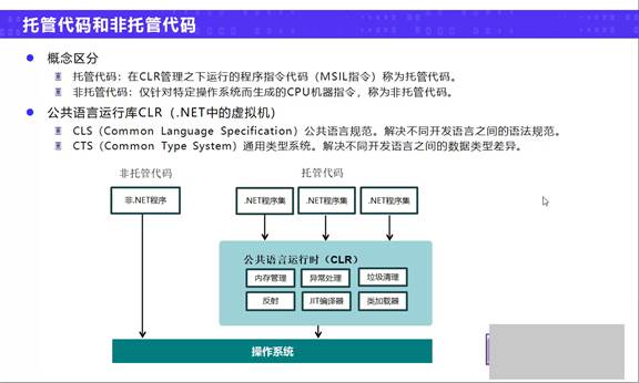 常老师通过VB.NET和C#编写的计算器方法演示了CLS(Common Language Specification)和CTS(Common Type System)在混合语言开发中的作用。尽管两种语言在语法上有差异,如括号使用、关键字和语句结尾符号的不同,但通过CLS,这些差异在编译成MSIL时被统一,使得不同语言编写的代码能够相互调用和兼容。通过编译和运行代码,证明了C#能够调用VB.NET的方法,展示了.NET框架下不同语言代码的无缝集成。此外,他还解释了数据类型如C#中的int和VB.NET中的Integer,在底层都被编译为相同的int32类型,强调了CTS在统一数据类型方面的作用。学生被鼓励理解这些基础概念,为后续代码学习打下坚实的基础。