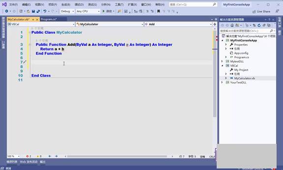 - 在本次操作中,首先将VBCL的引用添加到项目中,确保能够调用其功能,为后续测试打下基础。 2. 创建一个名为test class的新实例,通过new关键字初始化,目的是测试其内置的计算方法。 3. 通过调用test class中的爱的方法,并传入10和20作为参数,预期结果应为30,以此验证方法的正确性。 4. 在代码中设置断点,目的是观察程序运行时是否能够正确跳转至VBCL的内部执行,确保调用逻辑无误。 5. 整个过程旨在测试和验证基于对象的CRP程序编写方法,即使学生尚未学习对象概念,也通过实例演示加深理解。