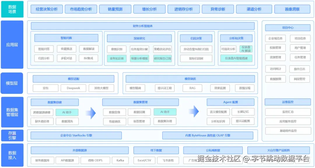 得物与火山引擎合作,通过引入火山引擎 Data Agent,优先聚焦"智能看板"和"归因决策"两个场景,逐步实现财务管理场景的 Data Agent(数据智能体)智能升级。
