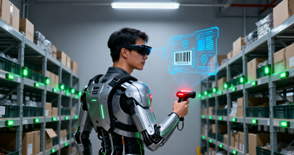 - 增强现实( AR )技术: AR技术通过可穿戴设备(如头戴式显示器HMDs或智能眼镜)将数字信息叠加到现实世界中。在仓库环境中,这意味着拣选员可以通过AR眼镜看到虚拟的拣选指令、产品位置、数量以及路径导航等信息,而无需低头查看纸质清单或手持设备。AR技术能够提供直观、沉浸式的体验,提高用户的感知和理解。