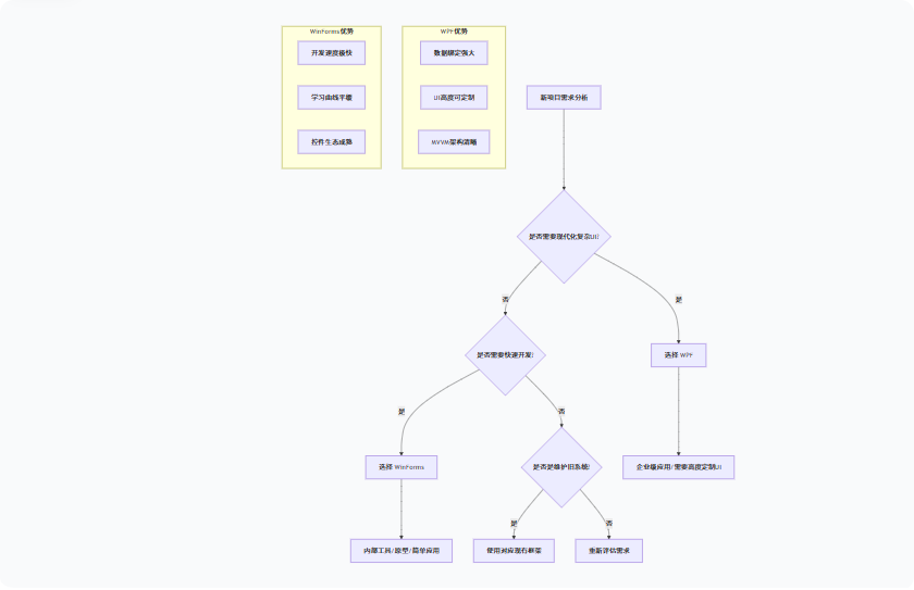 内部工具/原型 | WinForms | 开发速度快,学习成本低 |