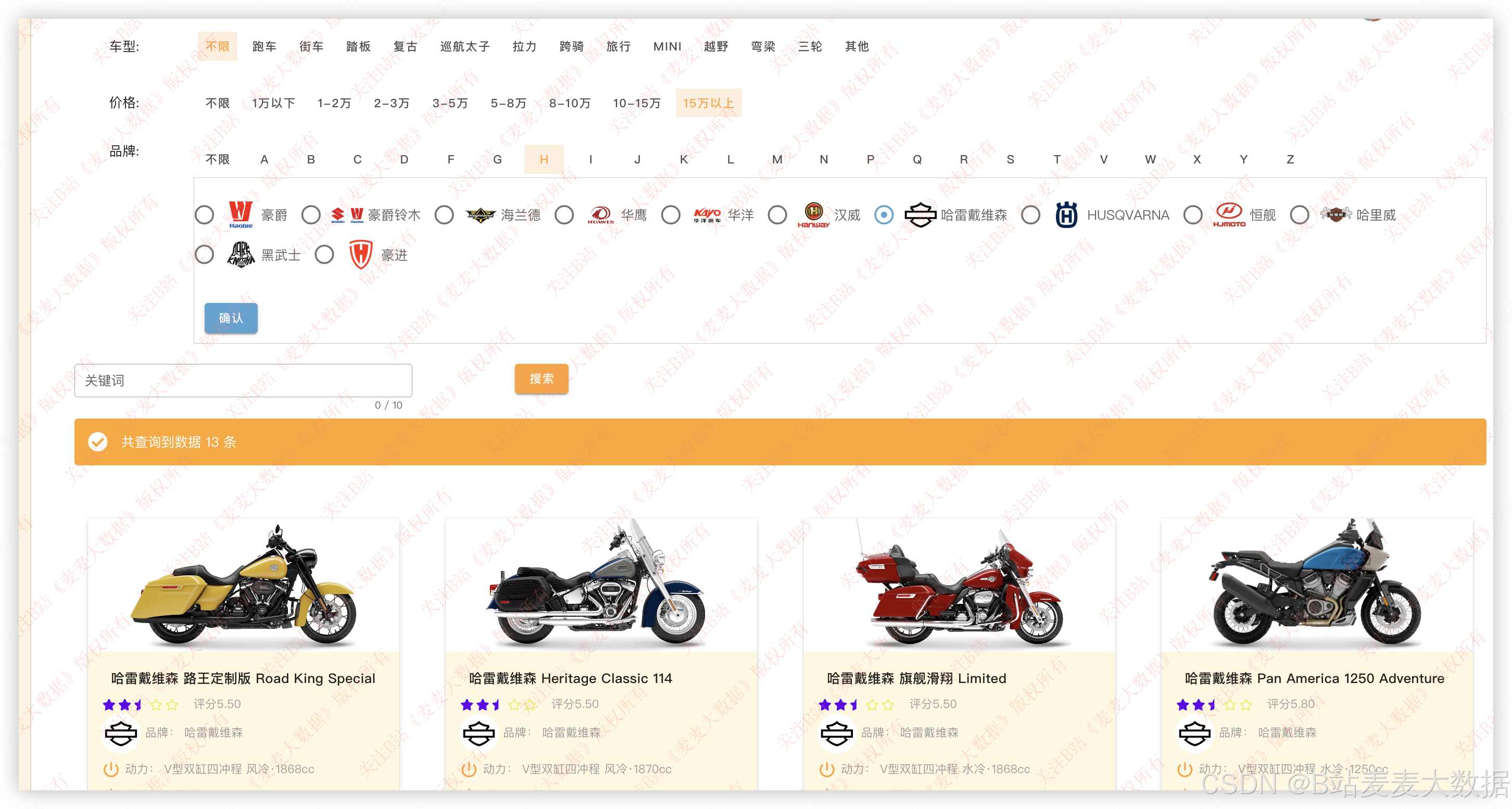 D025 🏍 摩托车价格预测推荐vue+django大数据分析系统echarts机器学习计算机毕业必学设计