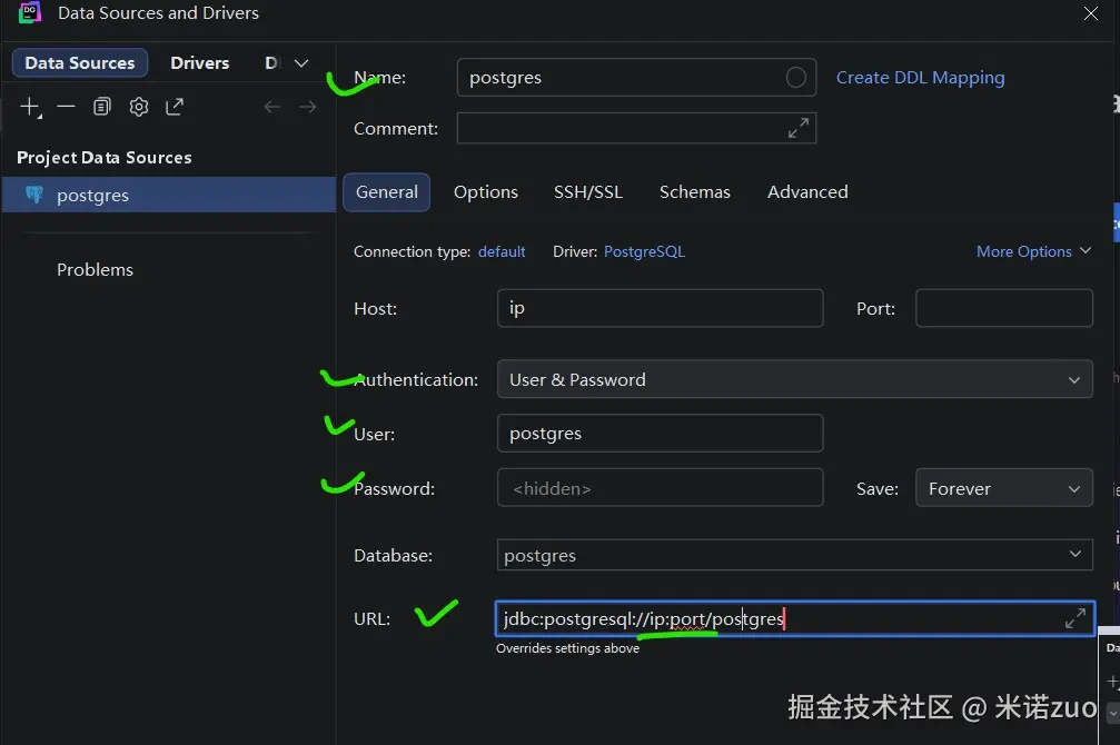 (或其他用户) - Password: 你的 PostgreSQL 密码