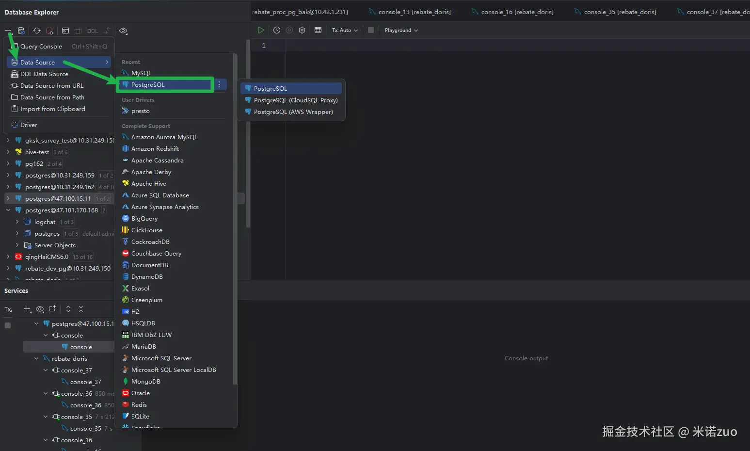 - 在左侧列表中找到 PostgreSQL,选中它。