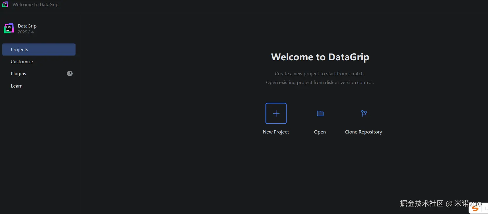 1.在新下载软件下,如图所示,点击New Project,进入新建数据库界面