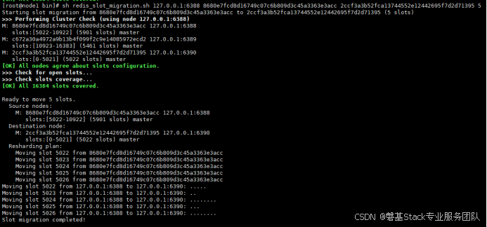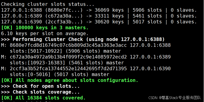 重新分片迁移完槽位后,脚本会检查集群槽位分布状态,