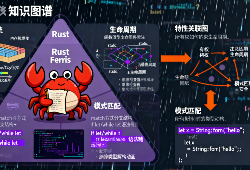 所有权系统通过严格的规则管理内存,避免了悬垂指针、双重释放等常见的内存错误。生命周期注解则帮助编译器确保引用总是有效的,防止了悬垂引用的问题。模式匹配则提供了一种强大而灵活的方式来处理不同的数据结构和情况。