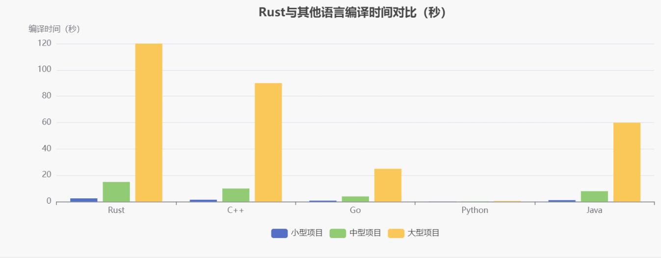 在使用Rust的过程中,开发者常常会遇到一些与所有权、生命周期和模式匹配相关的问题。下面列出了一些常见的陷阱和相应的最佳实践。Rust与其他语言编译时间对比如下: