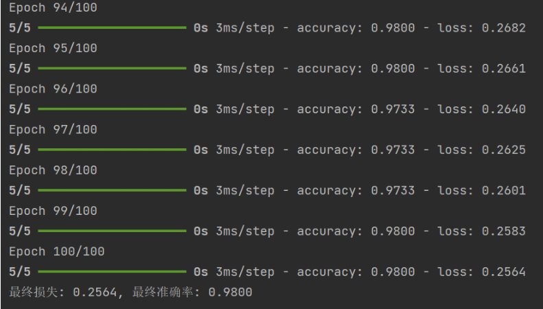 print(f"最终损失: {history.history['loss'][-1]:.4f}, 最终准确率: {history.history['accuracy'][-1]:.4f}")
