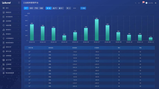 对各类能源使用、消耗、转换,按班组、区域、车间,产线、工段、设备等进行日、周、月、年、指定时段绩效统计按照能源计划或定额制定的绩效指标进行KPI比较考核,帮助企业了解内部能效水平和节能潜力,评定能源消耗是否合理。