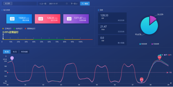 展示各电压器的负载情况,从而可以为变压器配备情况进行科学合理的规划。通过各种运行参数状态下用电效能的对比分析,找出更好的运行模式。根据运行模式调整负载,从而降低用电单耗,使电能损失降低。