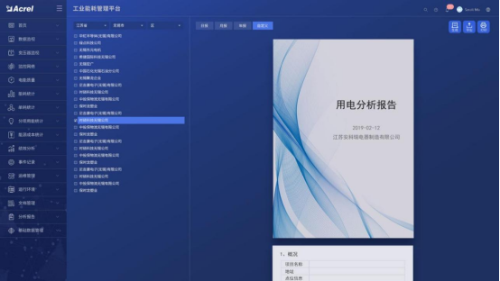 平台采用自动化、信息化技术和集中管理模式,对企业的生产、输配和消耗环节实行集中扁平化的动态监控和数据化管理。实时监测企业各类能源的消耗情况,通过数据分析、挖掘和趋势分析,帮助企业加强能源管理,提高能源利用效率和节能潜力,为节能改造提供数据依据。