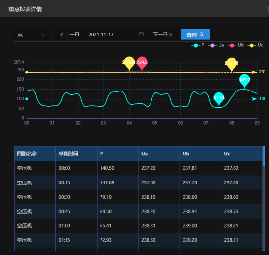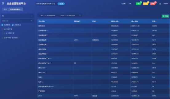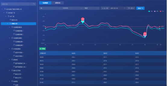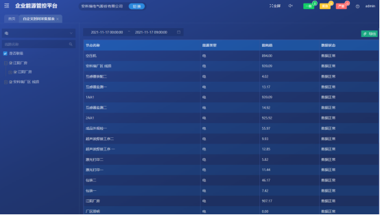 对企业各点位的能源使用、报警等情况进行实时的监控。以便企业用户能够实时的监测各个点位的运作情况,同时能更快的掌握点位的报警,并为企业削峰填谷、调整负载等技改措施提供数据支撑。