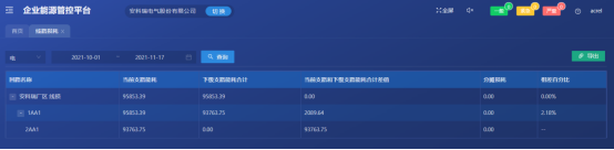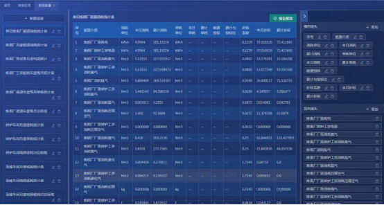 用户可通过自定义报表头与列,灵活生产各种报表,查看企业各个节点的能耗,单耗,成本,综合能耗等信息,并同比、环比报表,支持导出报表。