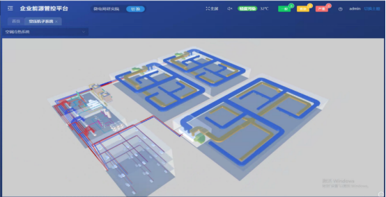 对各动力子系统进行虚拟仿真,展示子系统的动力管线、设备的实时状态及能源消耗情况,可实现动态的能源流向效果。