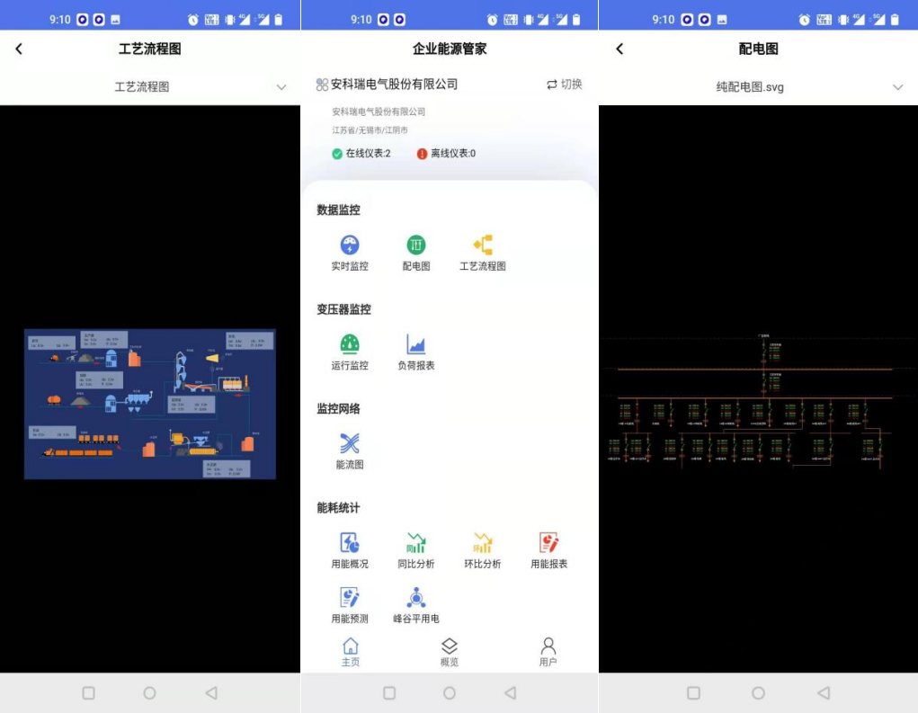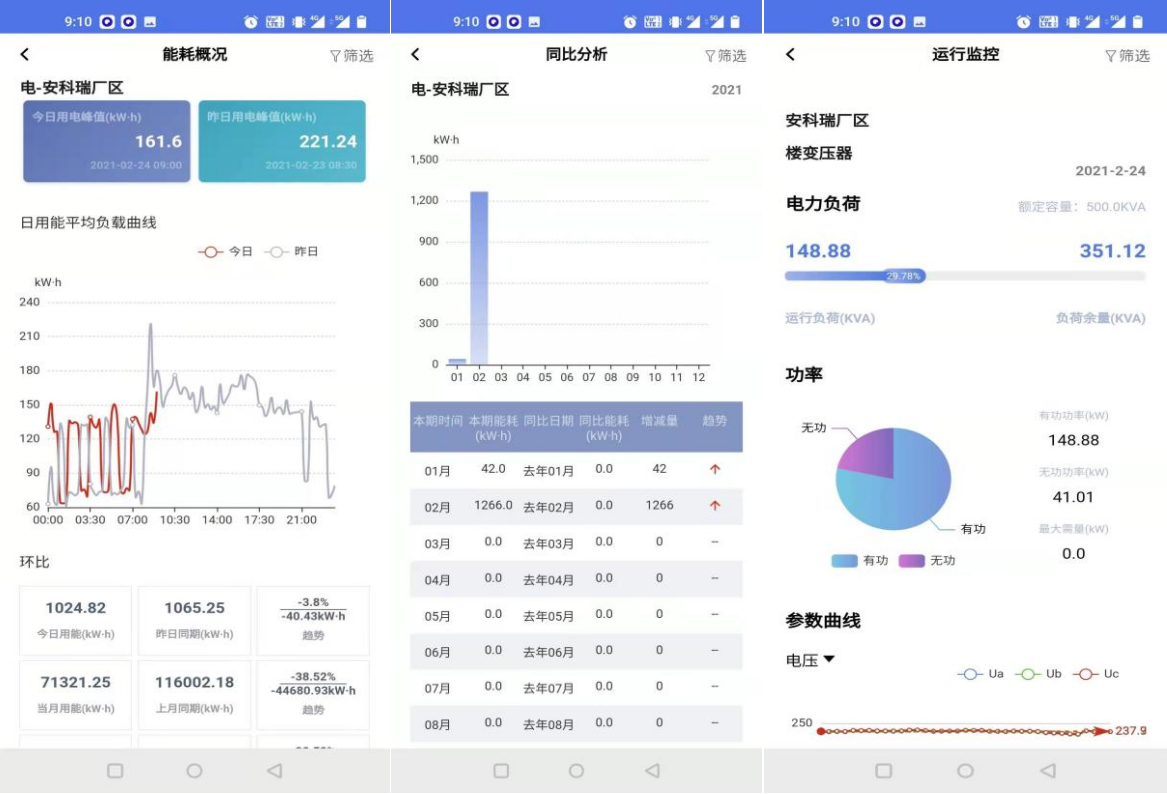 APP支持Android、iOS操作系统,方便用户按能源分类、区域、车间、工序、班组、设备等不同维度掌握企业能源消耗、产线比对、效率分析、同环比分析、能耗折标、事件记录、运行监视、异常报警、配电图、工艺流程图、能流图。