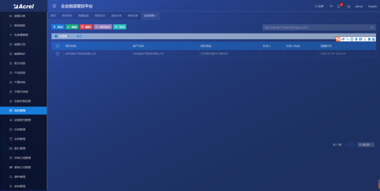 对系统的项目、探测器、设备型号、电参量、节点、能源、公示、及相关参数进行配置、修改、删除等管理、进行用户添加和授权管理、合同管理。
