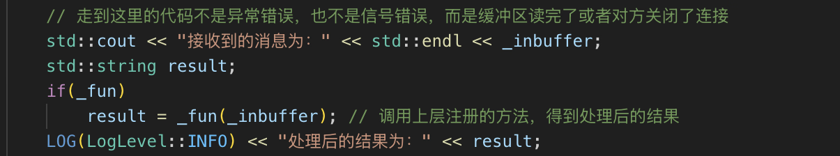 result = _fun(_inbuffer); // 调用上层注册的方法,得到处理后的结果