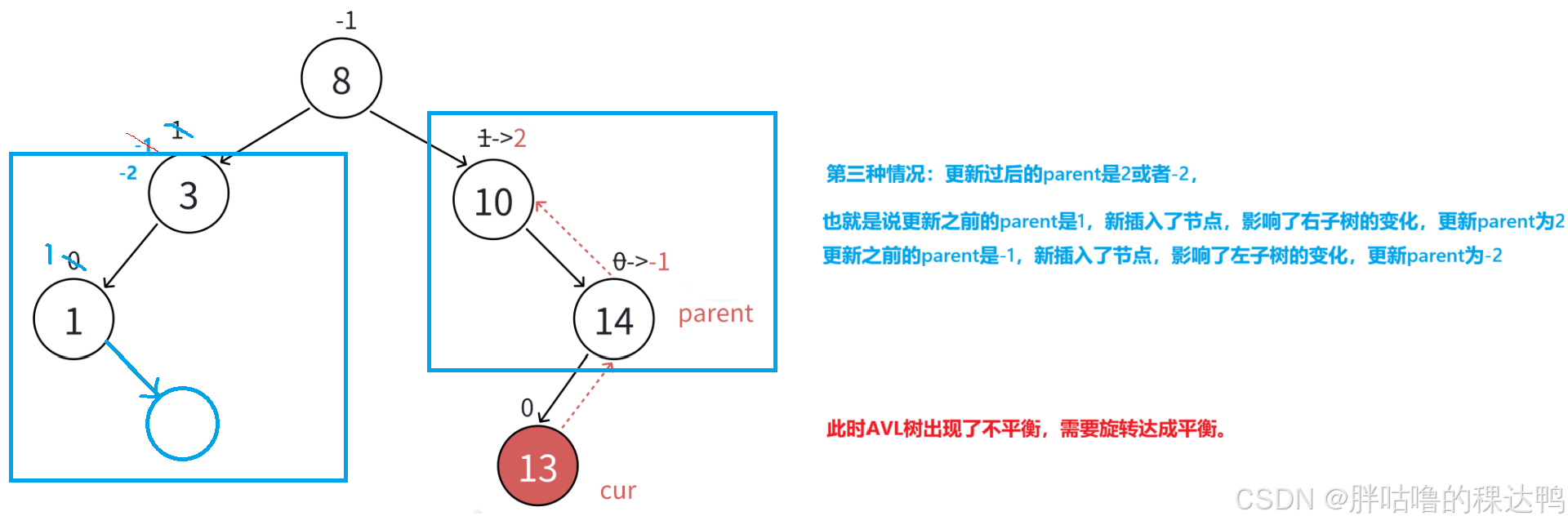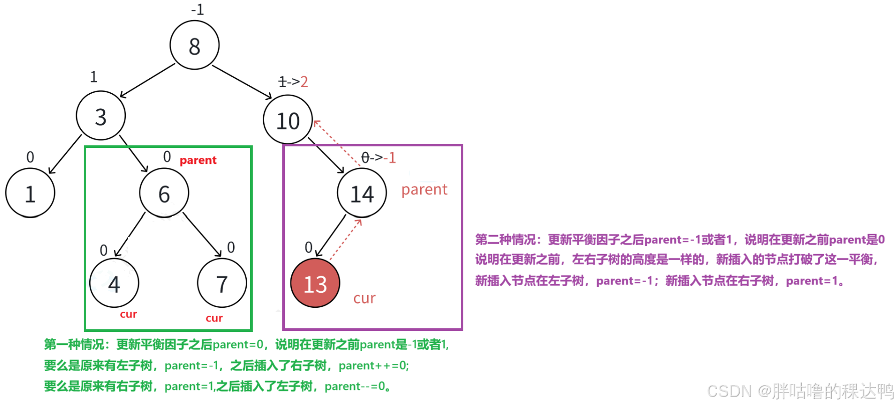 要么是原来有左子树,parent=-1,之后插入了右子树,parent ++ =0;