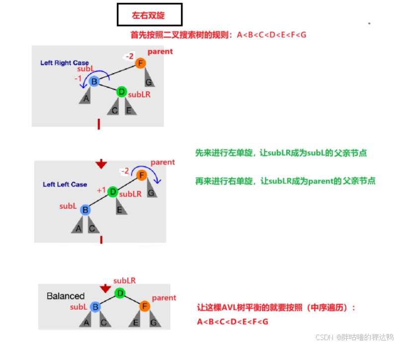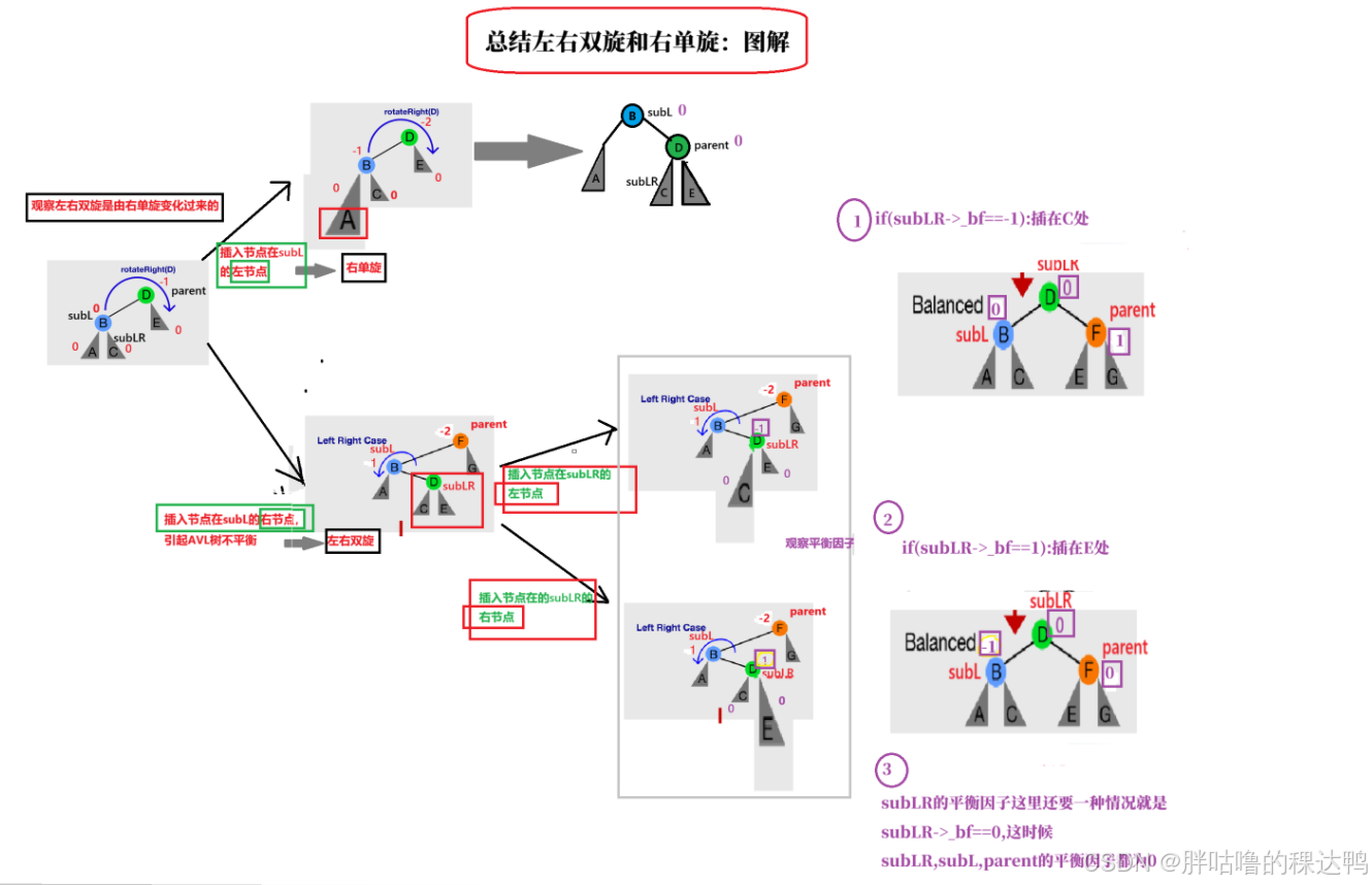 如果subLR的平衡因子为0,那就说明这个树只有一个根节点,根节点的左节点,还有一个就是subLR的节点(插入在根节点左节点的右边);