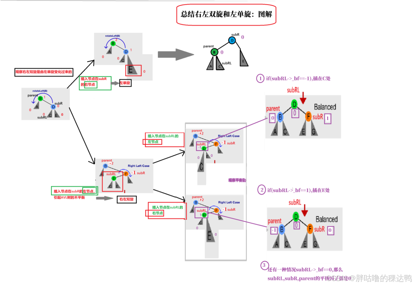 最后改一下平衡因子:parent->_bf = subLR->_bf = 0。