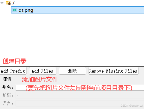 为此Qt提供了qrc机制:创建后缀为.qrc文件,把图片资源加载进来;此时构造icon对象的路径就是.qrc文件,程序运行是就要在.qrc文件中找到图片资源后,自动生成的C++代码,使用数组把图片的二进制数据保存起来与程序一同执行,此时生成的图片资源就称为exe程序的一部分