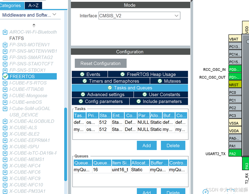 添加485串口接受数据处理任务,以及对应的接受数据队列,这里也对默认任务的堆栈做了放大处理。