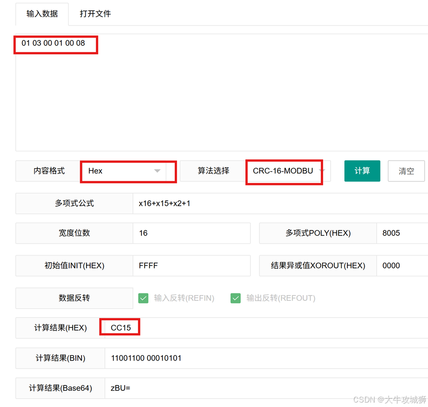 关于CRC计算可以使用如下网址的在线计算,也可以使用其他软件: